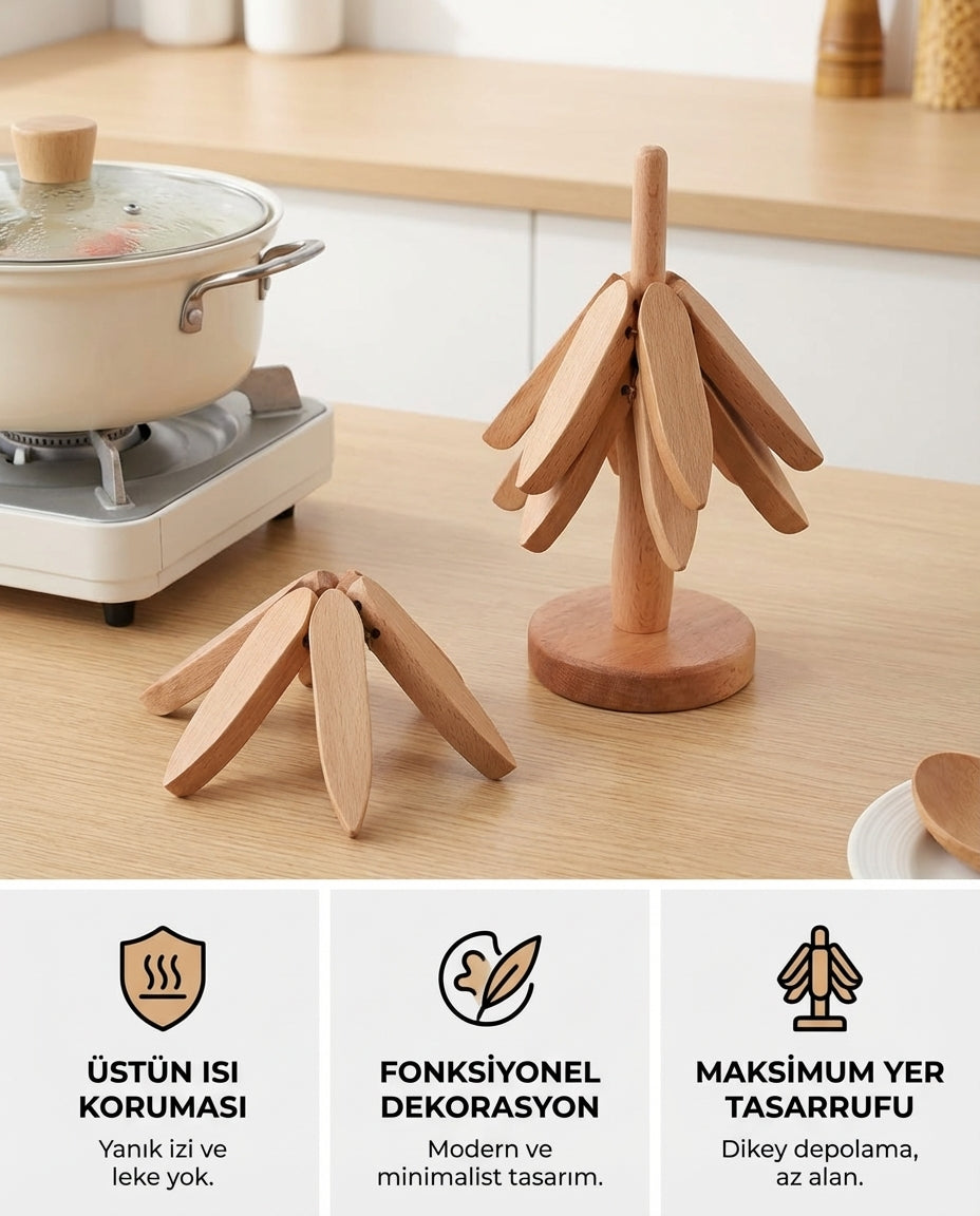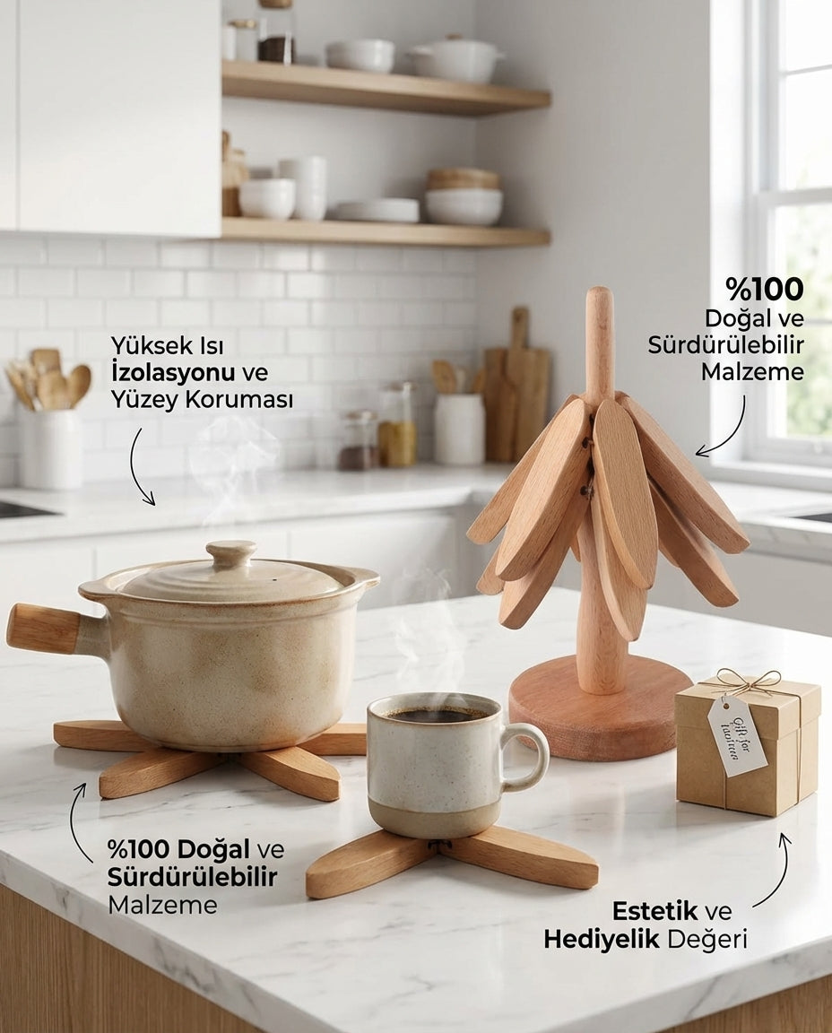 Yüksek ısıya karşı etkili koruma sağlar, %100 doğal ahşap yapısıyla masanıza zarar vermez.